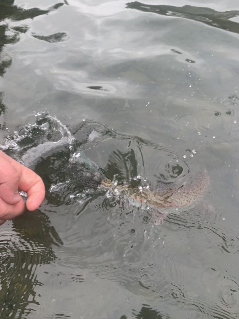 This is supposed to be a fishing report so I’ll list the hard facts. The weather was rainy, really rainy, which made me wish I had a good wading jacket, and a little windy with a high of maybe 45. The river was clocking in at 2000 CFS or so with next to no water coming out of Hills Creek dam. The water was ice cold. I had to add layers under my waders after I fished the first run of the day. The fish were in normal winter holding water, walking pace water with some decent depth. I waded pretty deep to get out to where I was within casting range. First fish was hooked in 5 minutes and lost promptly. I think that would’ve been my biggest fish of the day. I caught four whitefish throughout the day, which I found odd I had never caught one on the Middle Fork before but it happens and I’m not upset by that. I think it was a total of 10 rainbows I got to the net. So it was pretty productive. The flies that won the day were a golden pat stone in size 10 and a duracell in size 12. The other honorable mentions were a pink squirmmy wormy, thread frenchie, holographic frenchie, possie bugger, and a red tag squirrel. I did catch a fish on a super heavy black bugger swung deep in this great run that would be a two handers dream run.