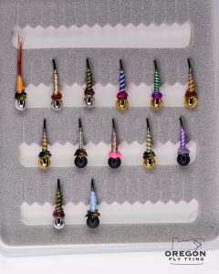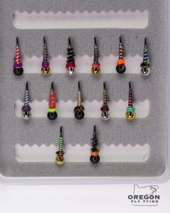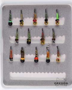 We are now offering Bakers Dozen Boxes for $20. These are flies that we made in our tying labs where we experiment with different materials and colors. Most of the flies are tied on size 14 hooks with a size 3.5mm tungsten bead.