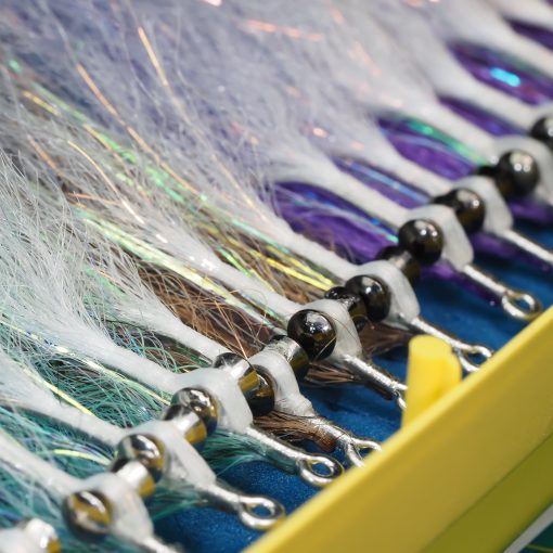 I discussed in a past post about fly design (HERE). There are a few flies that work better than others. Recently when going out and fishing off the jetty I’ve found 2 styles of flies that really stand out amongst the crowd. For me the number one fly is a clouser. No matter how you cut it, a clouser is the perfect rockfish fly. I tie mine with both bucktail and synthetic fibers. The synthetic ones are a personal favorite when tackling the salt. They last longer, the material is more consistently dyed, and the material is easy to work with. To help with durability I use brass eyes lashed down with 140 thread. The rest of the fly is tied with mono thread and lots of super glue. The glue helps weld the mono to the fibers, like a plumber using PVC glue to weld pipes together. The next fly is a finesse gamechanger. I really like these when I can clearly see fish moving bait or when bait is present. They key into this fly on the pause like no other fish I go after. If you want some really solid eats that buckle your 8 weight I recommend a gamechanger.