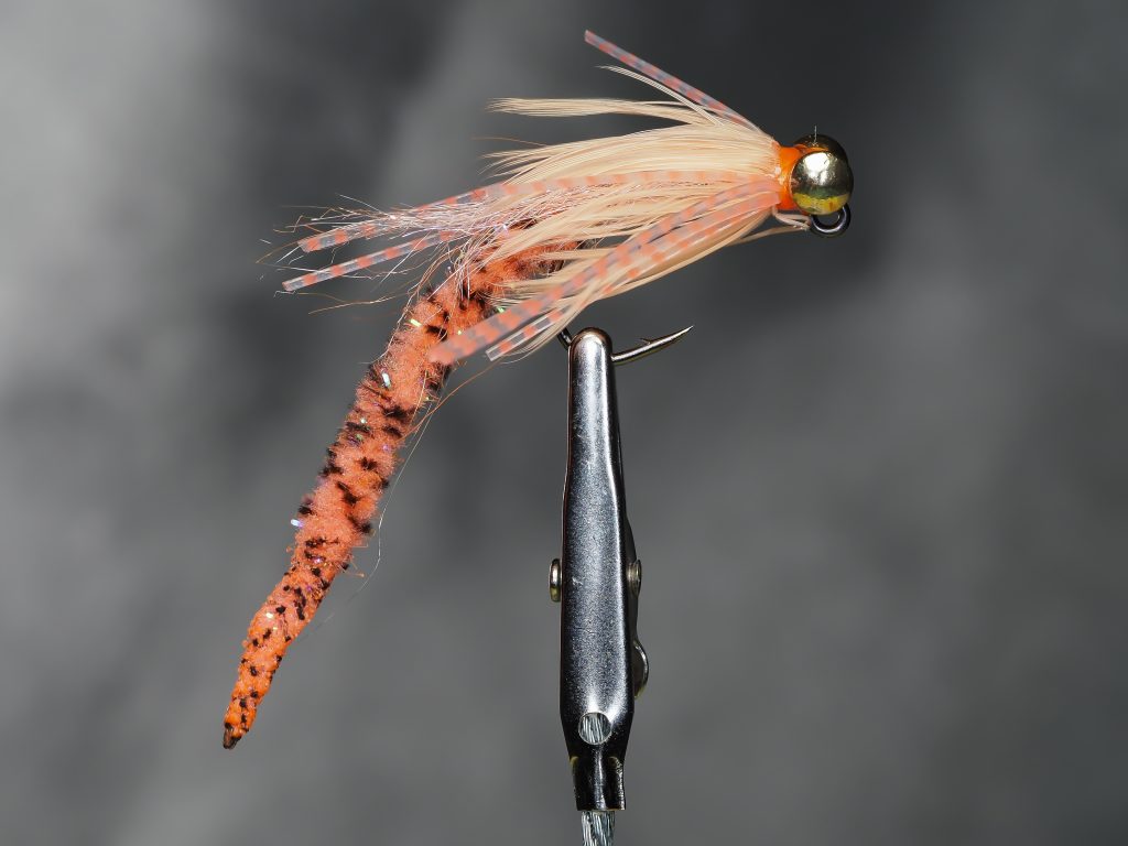 The jetty worm is my favorite pattern out there at the moment. It just plain catches fish. I like mine in the peach or white colors but I have had success on a baitfish blue color as well. I use some subs on materials but you can get a kit from Spawn Fly Shop or you can have your local fly shop order all the materials from Hareline for you. I catch loads of fish on these flies.